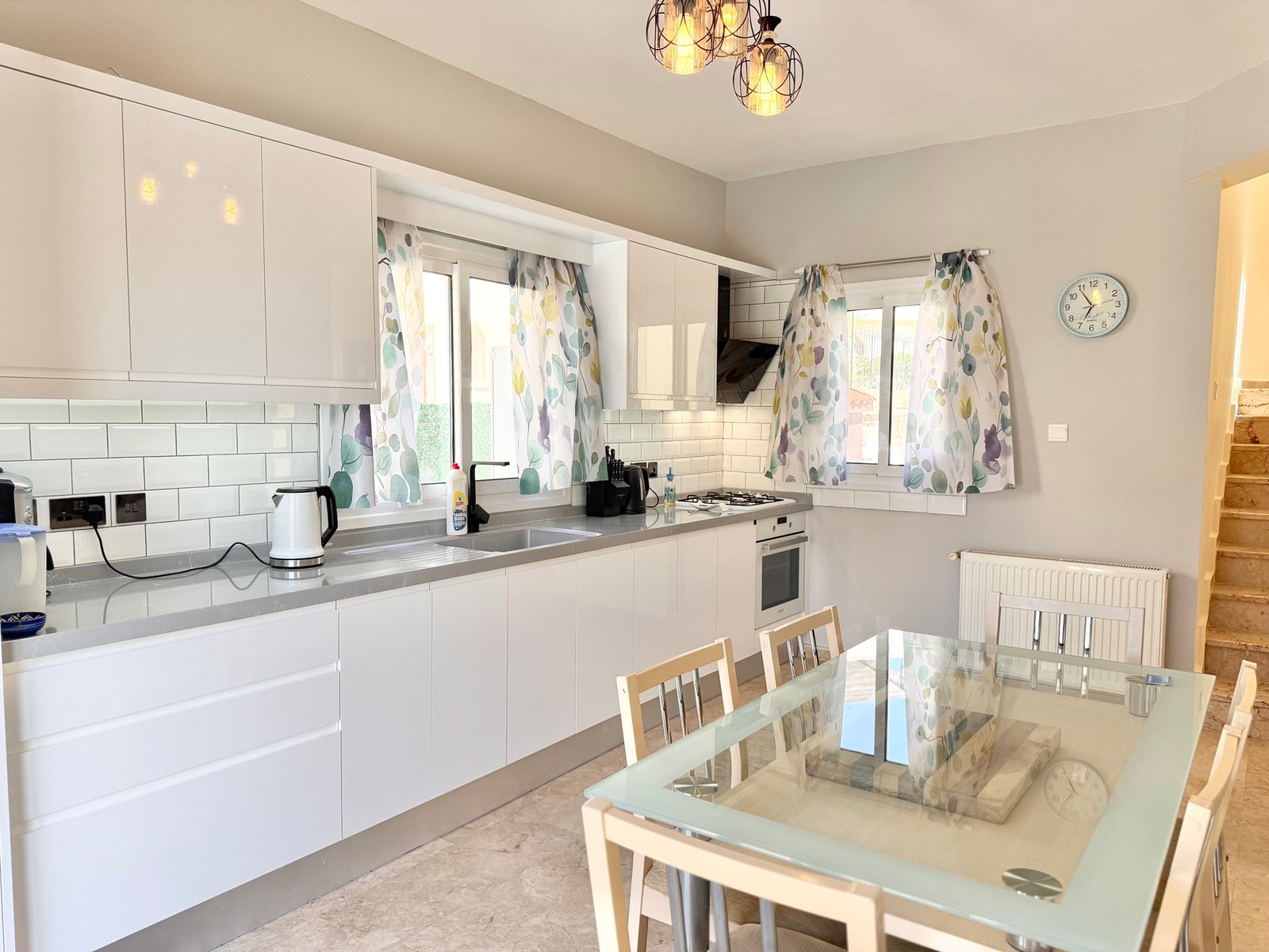 Built in 2007, the villa offers a generous 145 sqm living space and is fully furnished, making it ready for immediate use. The property features three bedrooms, two bathrooms with WC, and a bright living area designed for comfortable family living.