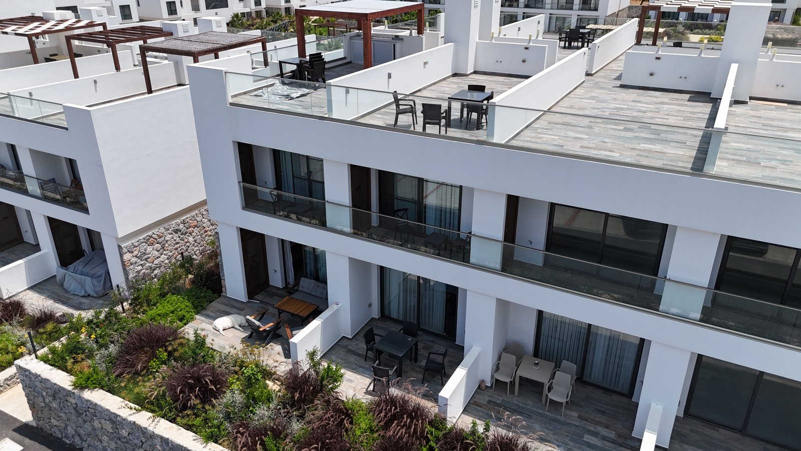 The apartment features a 33 sqm private terrace and enjoys beautiful sea views, creating a unique outdoor living experience. Its garden-level position provides easy access and strong appeal for holiday rentals.